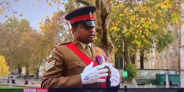 Cada 11 de noviembre, todos los países de la Mancomunidad Británica de Naciones celebran el Día del Recuerdo para recordar los sacrificios de los miembros de las Fuerzas Armadas y los civiles en tiempos de guerra. El día fue establecido por el rey Jorge V en 1919, coincidiendo con el aniversario del fin de los enfrentamientos de la Primera Guerra Mundial. La dircom de la Gran Logia Unida de Inglaterra, Michelle Worvell, subía esta maravillosa imagen tomada del informativo a su cuenta de Twitter. «Me encantan los guantes«, escribía. El protagonista de la imagen es Johnson Gideon Beharry, condecorado con la Cruz Victoria, la más alta condecoración al valor en las Fuerzas Armadas británicas. ¿Se imaginan a un militar español, condecorado con la Laureada de San Fernando, luciendo con orgullo los guantes de la escuela moral a la que pertenece?